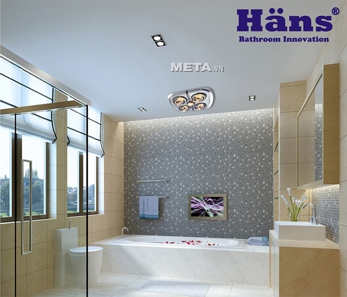 Làm ấm hiệu quả: Với công suất mạnh mẽ, đèn sưởi Hans H4B giúp bạn nhanh chóng có được không gian phòng tắm ấm áp, dễ chịu mà không cần chờ đợi lâu.